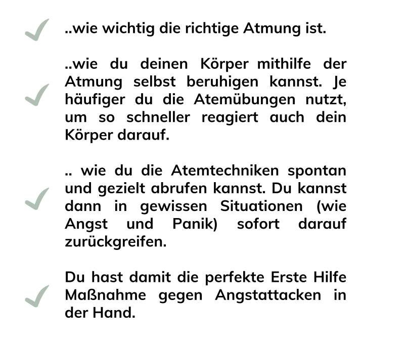 Nach deiner Bestellung erhältst du sofort deine Zugangsdaten - egal zu welcher Tages- oder Nachtzeit. Du kannst direkt loslegen. Es handelt sich um ein digitales Produkt. Diese Atemtechniken wurden sorgfältig zusammengetragen und aufgearbeitet. Sie bieten eine Hilfe zur Selbsthilfe. Sie ersetzen keine Therapie.